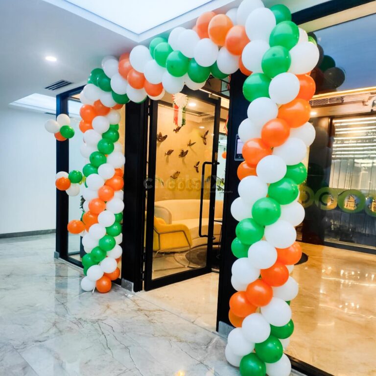 Independence Day is more than just a national holiday—it’s a reminder of our country’s journey, the sacrifices made for our freedom, and the unity that binds us together. It’s the perfect time to celebrate with colleagues, classmates, neighbors, and family in a setting that radiates patriotism and joy. At Balloon Decoration Delhi, we bring the tricolor to life with our Independence Day balloon decoration services. From grand stages to small gathering spaces, our vibrant tricolor balloon setups transform any venue into a festive and Insta-worthy celebration of India’s independence. With years of experience in event décor, our expert team ensures every setup captures the true spirit of August 15—whether it’s an office celebration, school flag-hoisting ceremony, society gathering, or private home event.